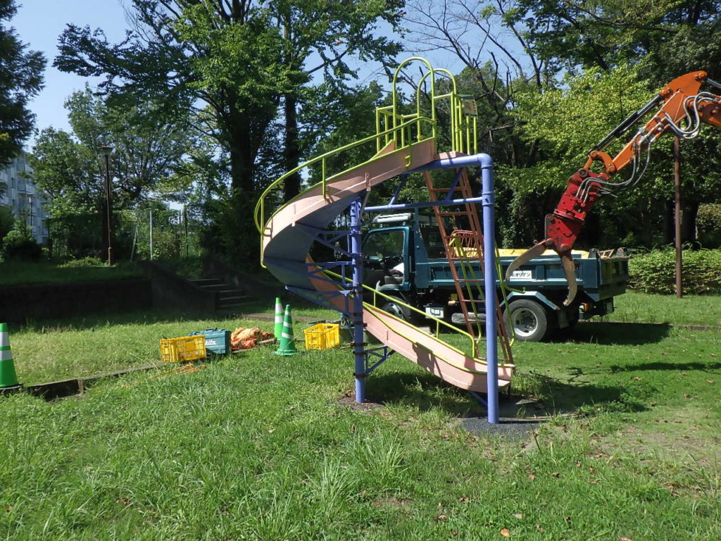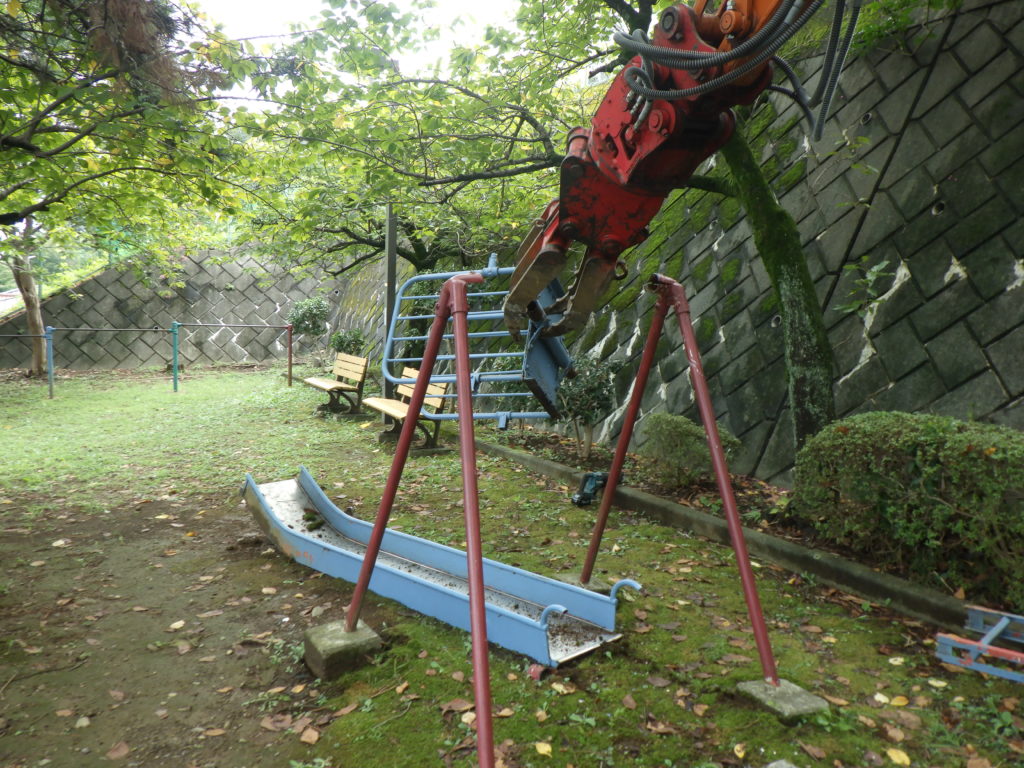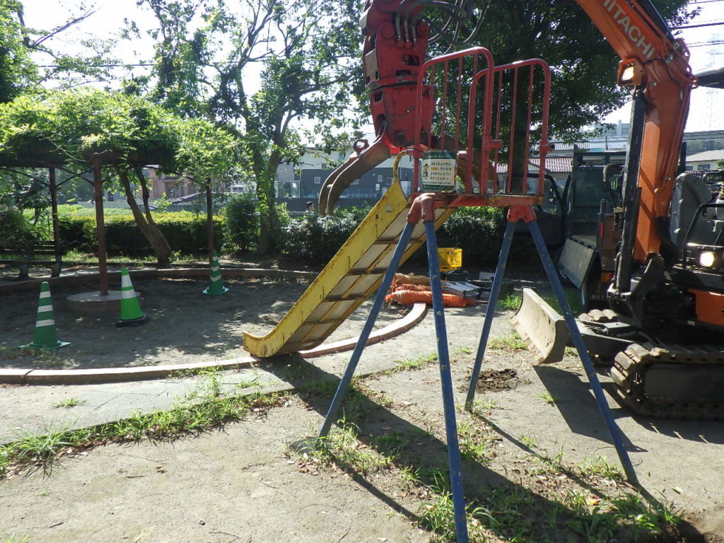 遊具の更新工事に伴い経年劣化で安全性が確保できない遊具の解体・撤去作業を行いました。