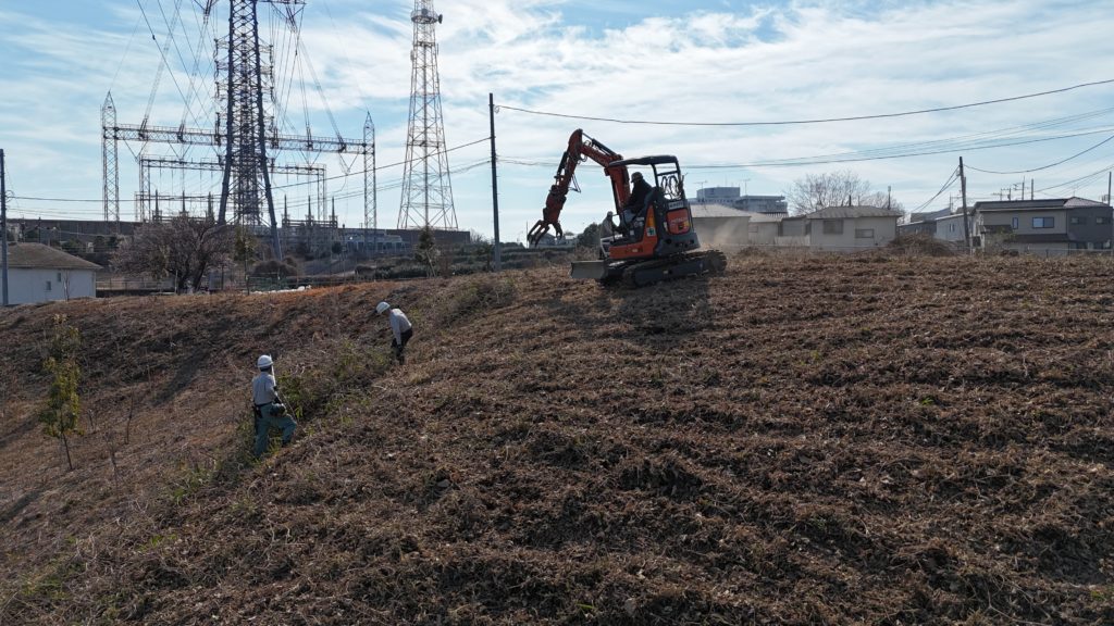 蔓、竹、草で鬱蒼としていた場所の草刈を行いました。