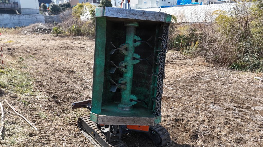 スイッチを押すと内部の刃が高速回転し、草などを細かく粉砕します。